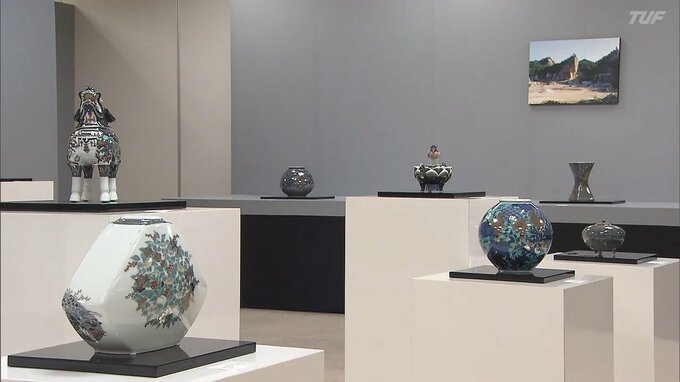 郡山市のうすい百貨店では、12日から、陶芸家で人間国宝の十四代今泉今右衛門さんの展覧会が始まりました。