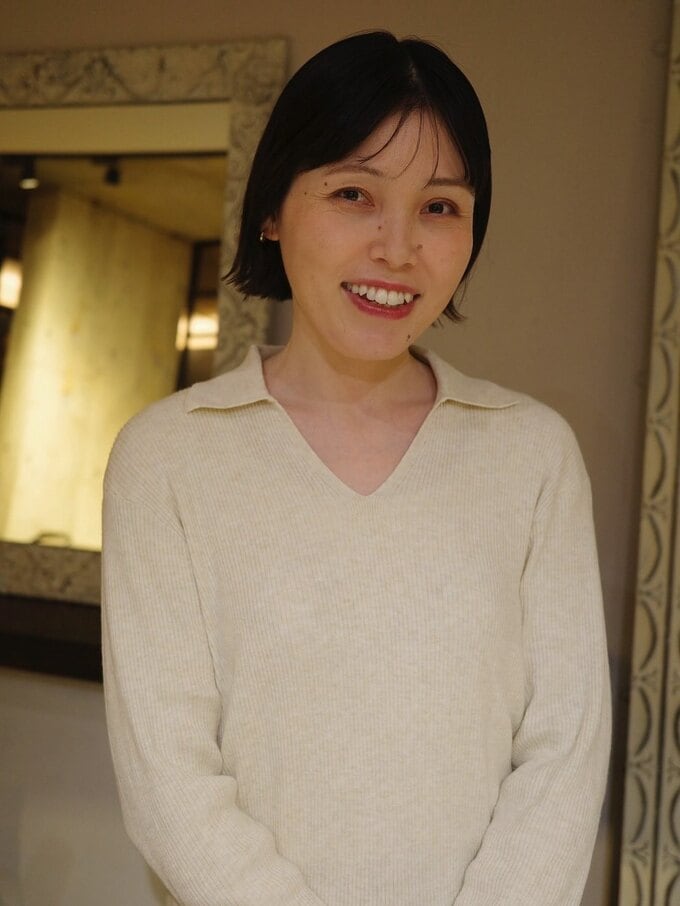 誠子さんの新しいヘアスタイルは短めの黒髪のボブカット。前髪は自然に分けられ、全体的にすっきりとした印象です。投稿された写真では、淡いベージュ色のVネックニットを着た誠子さんが、カメラに向かって優しい微笑みを浮かべています。