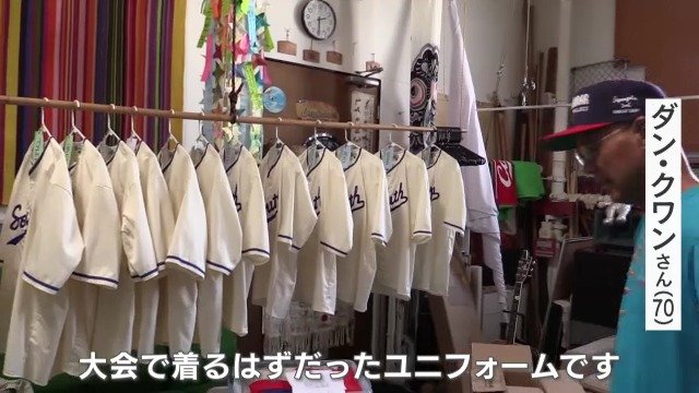当時を再現したユニフォームには一人ひとりのネームタグ。昔ながらのベース。すべてダンさんが準備してきました。