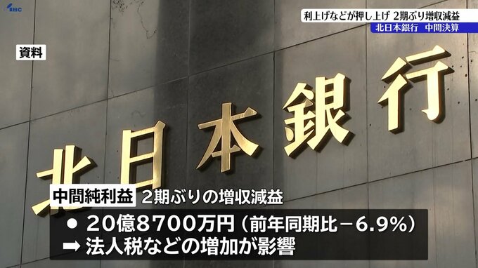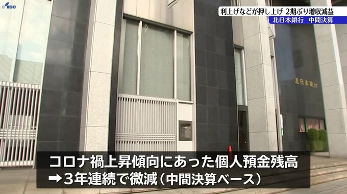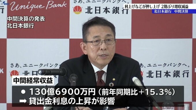 北日本銀行は12日、増収減益となる2025年度の中間決算を発表しました。利上げなどが業績を押し上げましたが、個人預金は緩やかに減少しています。