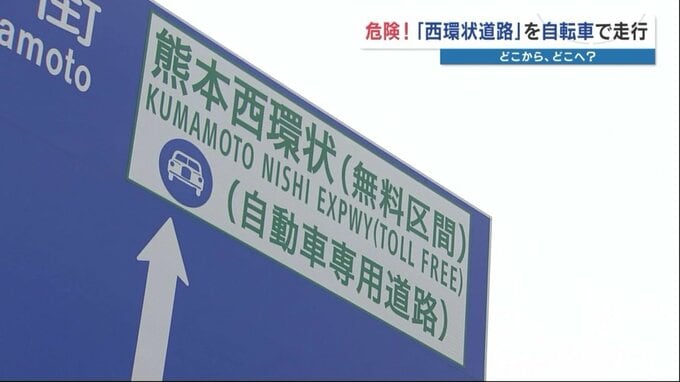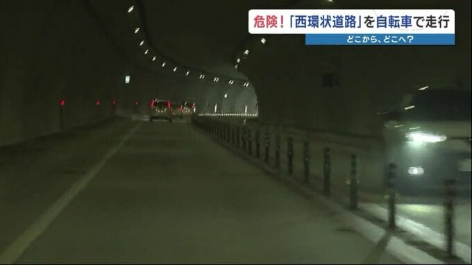 時速70キロ近い車が行き交う自動車専用道路を自転車で走る危険な行為。