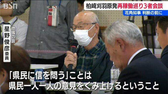 【地域の会 中村伸哉 委員】「先日の意識調査の結果から知識不足や情報をそしゃくできないことが不信感を生み判断を難しくしていると感じた。またその人たちに回答を、知事のが再稼働の是非を断時するための参考にすることに不安を感じた」