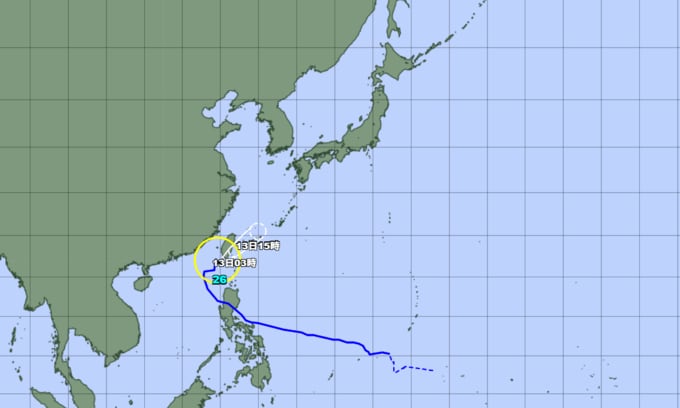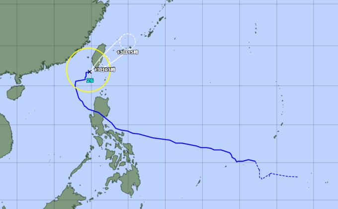 15m/s以上の強風域 北西側 330 km (180 NM)