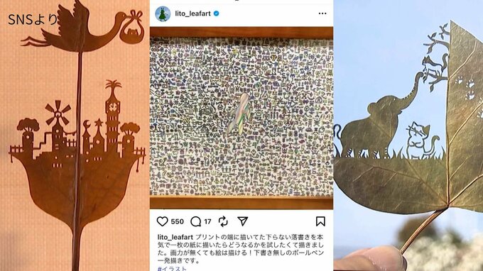 リトさんの葉っぱ切り絵展は、12月15日まで開かれています。
