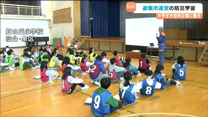 地震や豪雨などの自然災害に備え、児童が避難所の開設や運営を体験する防災学習が仙台市の小学校で行われました。