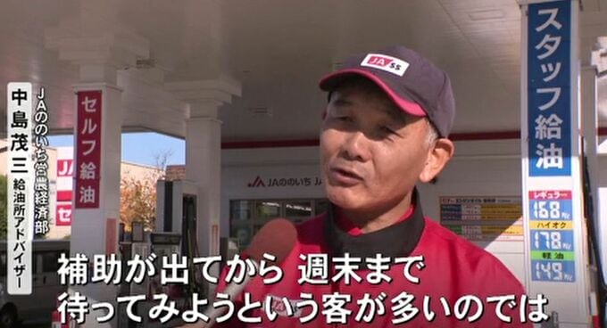 JAののいち営農経済部・中島茂三給油所アドバイザー「補助が出てから、週末まで待ってみようかなというお客さんが多いんじゃないかな」