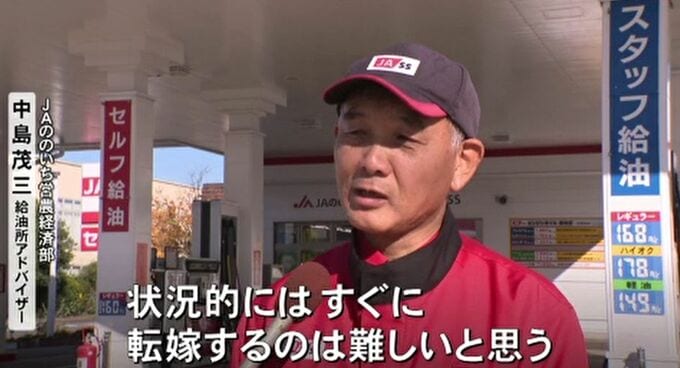 JAののいち営農経済部・中島茂三給油所アドバイザー「状況的にはすぐに転嫁するのは難しいと思います。きょうまでの在庫がある。その分は高い値段で仕入れているのでそれをうまく消化していかなきゃいけないということもありますので」