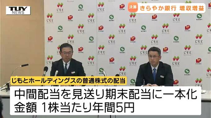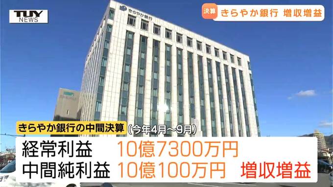 仙台市のじもとホールディングス傘下のきらやか銀行がきょう、中間決算を発表しました。前期比で増収増益の黒字で、通期予想でも黒字を見込んでいます。