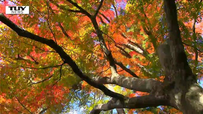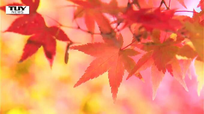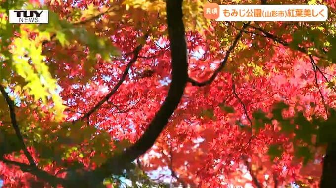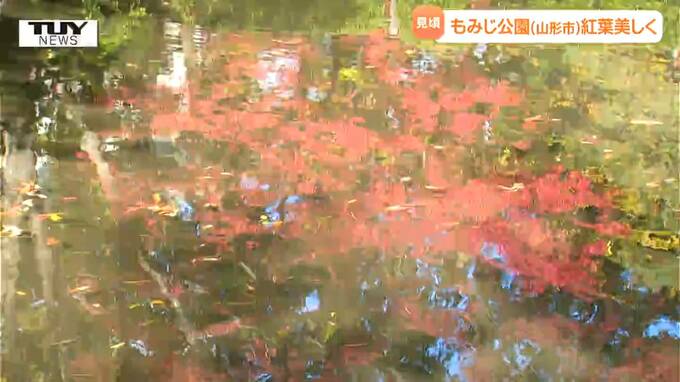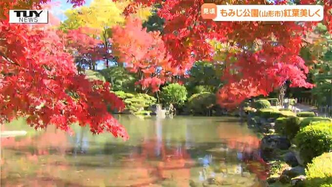 山形市にある「もみじ公園」では紅葉が見頃を迎えていて、赤や黄色に染まったモミジが庭園に彩りを添えています。