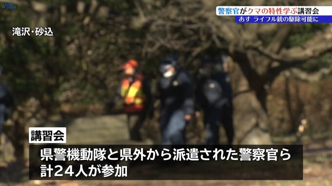 13日から警察官によるライフル銃を使ったクマの駆除が可能となるのを前に、クマの特性や駆除の方法について学ぶ講習会が12日に岩手県滝沢市で行われました。