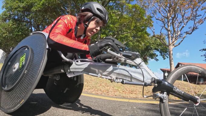 (戸次美保さん)「低い姿勢から前を見る体勢が首と背中に負担がかかり、生活用の車いすとまた漕ぎ方も違うので、指導を受けながら練習していますが、なかなかフォームがうまくいきません。まだまだ改善中です」
