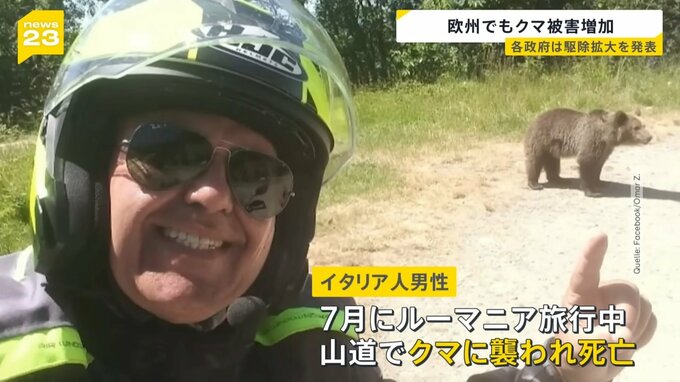 2025年7月には、ルーマニアを旅行中のイタリア人男性が山道をバイクで走っていた際、クマに襲われ死亡しました。男性は、クマを見かけてえエサ与えようとしていたということです。
