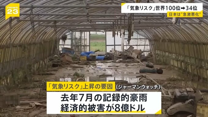 日本は2024年の100位から34位と大幅に上昇。その要因は、猛暑により熱中症などの人的被害が相次いだことと、2024年の梅雨前線による7月の記録的豪雨での経済的被害を8億ドルと評価したことなどを、ドイツの研究機関はあげています。
