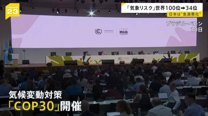 世界で気象災害が起きている中、気候変動対策を話し合う国連の会議「COP30」が開催されています。それにあわせドイツの研究機関「ジャーマンウォッチ」は、気象による人的被害と経済的被害に基づく「気象リスク」を分析し、ランキングを発表しました。
