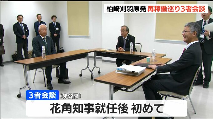 東京電力の柏崎刈羽原子力発電所の再稼働を巡り、「近く考えを示す」としている新潟県の花角英世知事が、原発立地自治体のトップとの『3者会談』に臨みました。