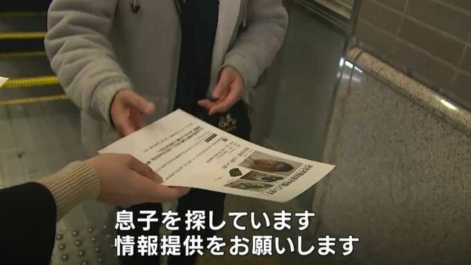 梶谷恭暉さんの母親と岡山県警の署員がJR岡山駅前でチラシを配り、情報提供を呼びかけました。