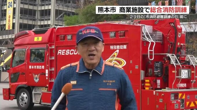 11月29日の「熊本市消防避難訓練の日」を前に、熊本市の商業施設で火事を想定した避難訓練が行われました。