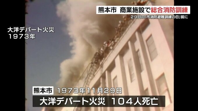 熊本市では52年前の11月29日に発生した大洋デパート火災で104人が亡くなっていて、その教訓を活かすために訓練を行っています。