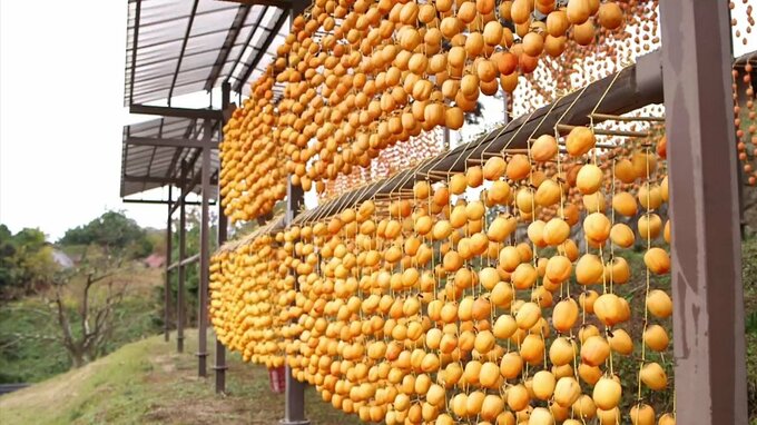 尾道市で特産の干し柿づくりが最盛期を迎えています。