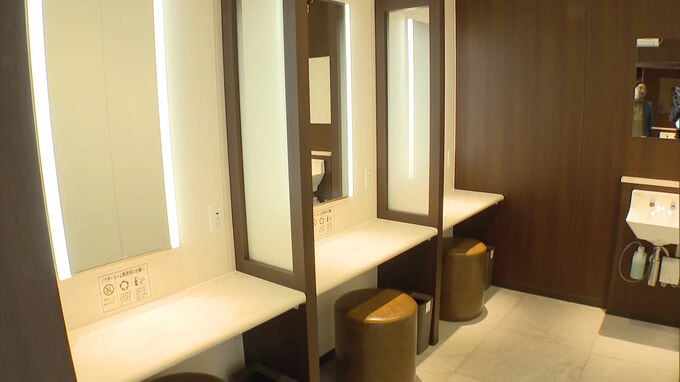 「トイレは1、2、3、4つ。そしてこちらはコンビニでは珍しい、パウダールーム。九州のファミリーマートではここだけです」
