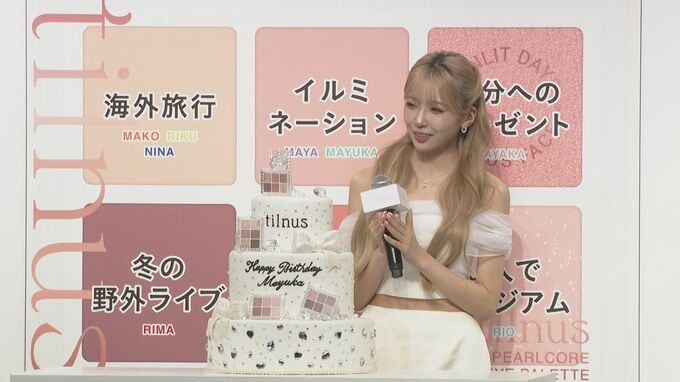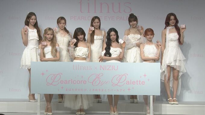 今回「tilnus」の新商品「パールコア アイパレット」の発売に合わせて、ブランドイメージモデルのNiziUが出演するWEB CMが公開されました。イベントではNiziUも全員がCM撮影時のきらびやかな衣装で登場。