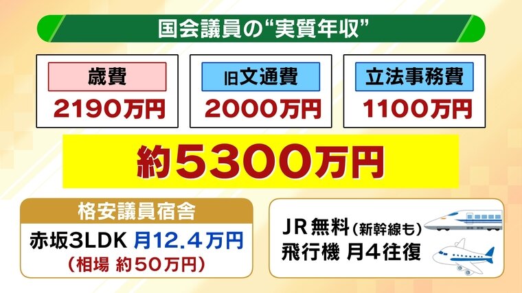 つまり、一般国会議員の実質年収は「約5300万円」となるのです。