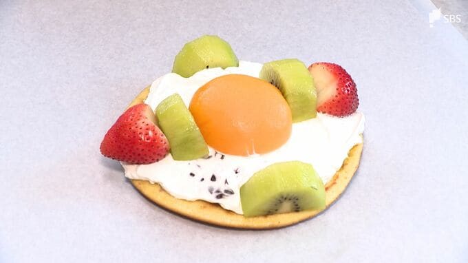 ふわふわの生地に挟まれた、たっぷりのクリームと果物。
