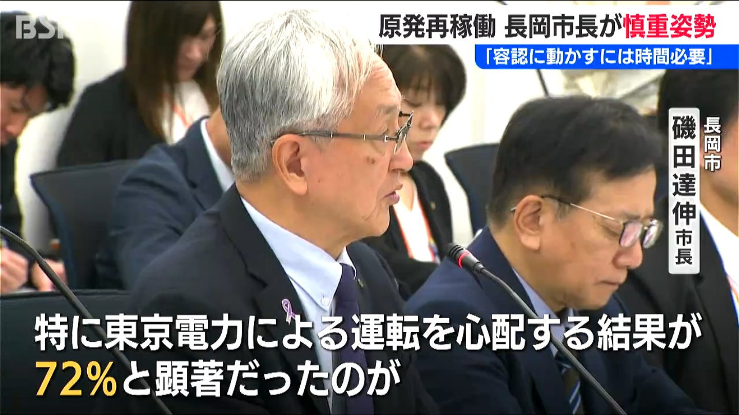【長岡市 磯田達伸 市長】「市民の再稼働問題に対する理解がとても厳しいものがあるなと率直に感じている。特に東京電力による運転を心配する結果が72%と顕著だったのが、私としては印象に残った」
