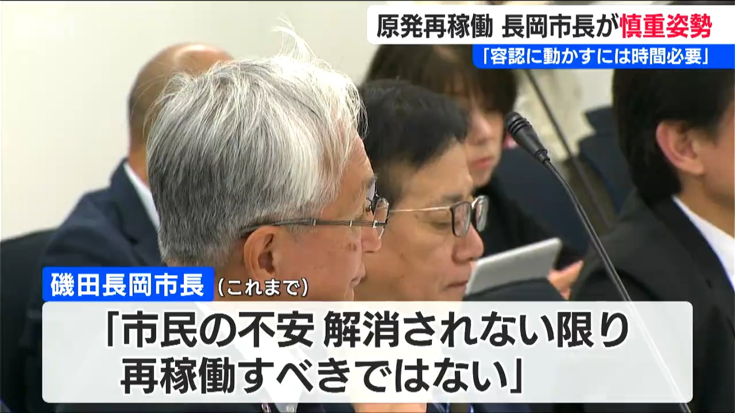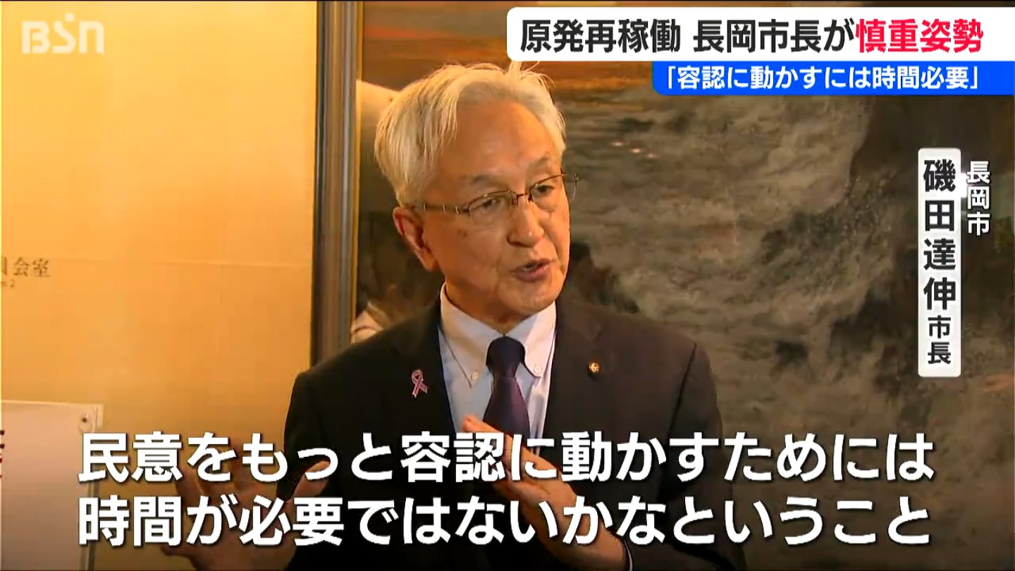 柏崎刈羽原発の再稼働を巡るニュースです。新潟県 長岡市の磯田達伸市長が「民意を容認に動かすには時間が必要」と述べ再稼働に慎重な姿勢を見せました。