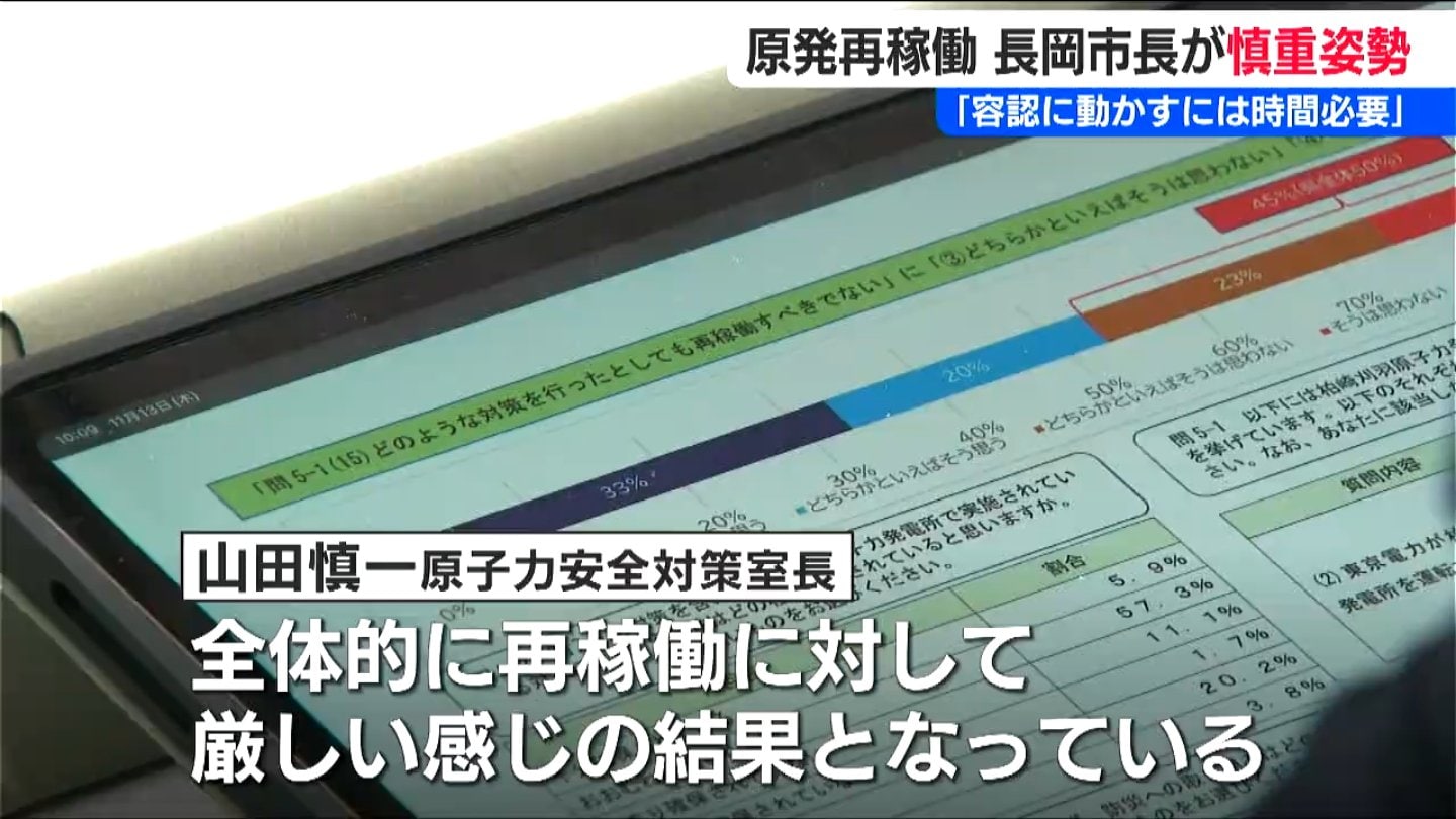 【山田慎一 原子力安全対策室長】「全県の集計結果と比べて、回答の傾向について大きな差異は見られなかったが、(長岡市分は)数値的に数ポイント全体的に再稼働に対して厳しい感じの結果となっている」