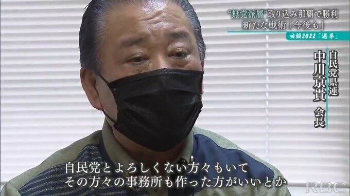 「勝つための戦略だったと思っております。ただその戦略は我々県連が作ったものではなく、(経済界が)「自民党とよろしくない方々もいらっしゃる」と。「そういった方々の事務所も作った方がいい」とか、その戦術に則って戦った結果が知念市長の誕生だったと思っていますし、そういうあり方は今後あるのかと言ったら、あると思ってます」