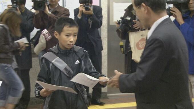 命日のビラ配りに参加していた長男の航平さん。2024年11月に結婚した相手は、亡き母・奈美子さんの親友の娘でした。
