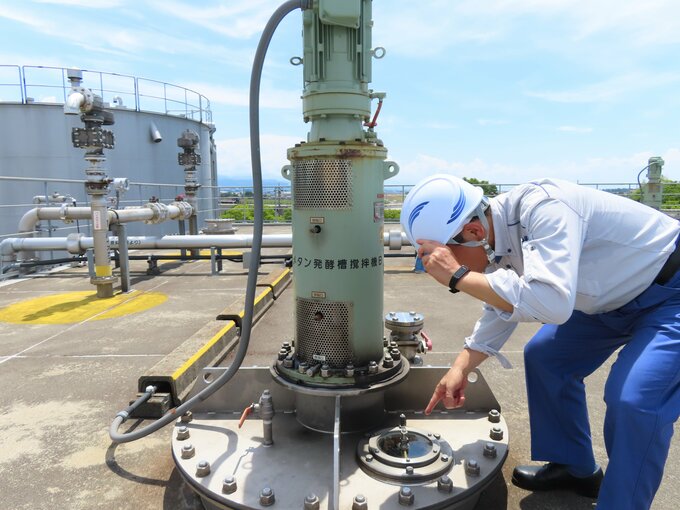 コーヒーかすがバイオガスを多く発生させることができるのは、脂質が多く含まれているからだ。荏原製作所が開発した方法によって、コーヒーかす1トンから約200立方メートルのバイオガスが発生する。濃縮した下水汚泥1トンから発生するバイオガスが約20立方メートルであることに比べると、約10倍もの量になる。このバイオガスによって、化石燃料を使わずに発電ができるようになった。