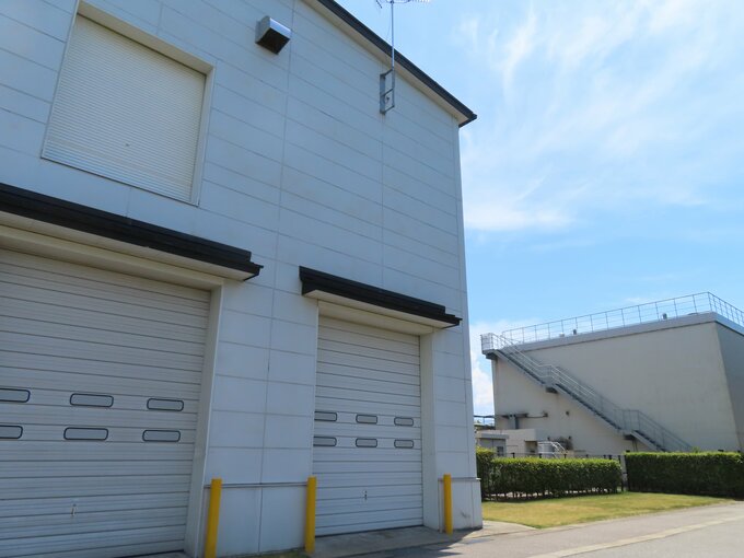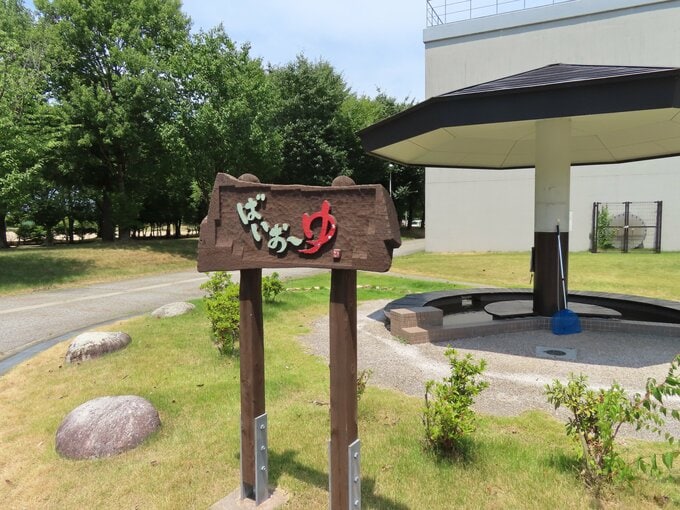 下水道バイオマスエネルギー利活用施設を実際に見せてもらった。通常の下水道処理施設は、コンクリートなどで外壁が囲まれている場合が多い。ところが、この施設は総合運動公園に隣接していて、特に壁などはない。しかも、バイオマス発電による熱を活用した足湯を作っていて、市民に無料で開放されている。