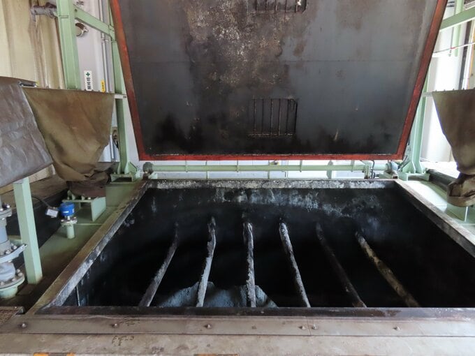 施設にはコーヒーかすの搬入口が設けられていた。アサヒ飲料や県内の飲料工場から持ち込まれるコーヒーかすは年間約2000トン。市内のホテルからも月160キロほどが持ち込まれる。