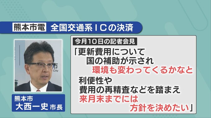 こうしたことも踏まえ、大西市長は、11月10日の記者会見で「更新費用について国の補助が示され、環境も変わってくるかなと。利便性や費用の再精査などを踏まえ12月末までには方針を決めたい」と話しています。
