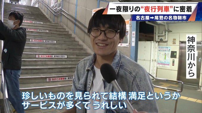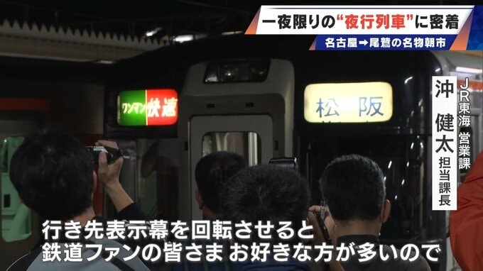 午前1時12分、夜行列車は三重県の亀山駅に到着。乗客は降りて列車の車体にカメラを向けます。これは一体…?