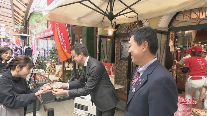 13日は名古屋市の広沢一郎市長やイタリアの総領事も訪れ、並んで待っていた人たちにピザを手渡しました。
