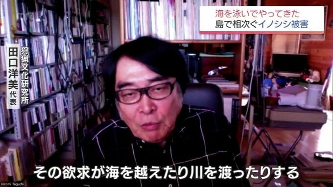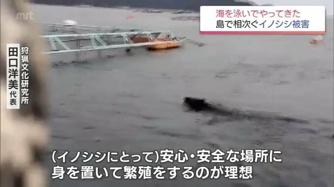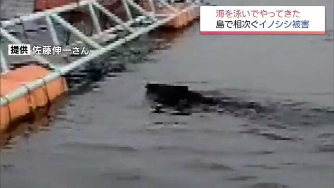 取材を進めると、海を泳ぐイノシシを捉えた映像を入手した。