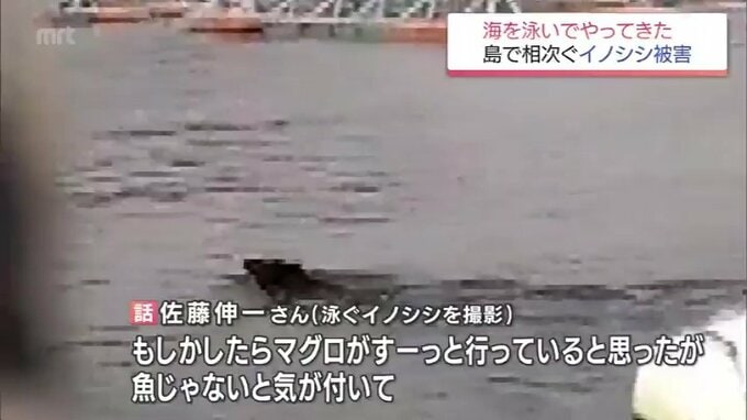 「初めて見た。予想がつかなかった。もしかしたら、マグロがすーっと行っていると思ったが、魚じゃないと気が付いて、近づいてみたら、イノシシが泳いでいた」