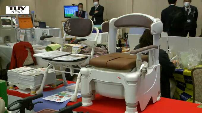 今回は全国から54社が出展し、展示会場には車椅子や高齢者用のおむつなどを始めとするおよそ150の商品が並びました。