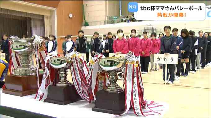 富谷スポーツセンターで開幕した「秋季tbc杯宮城県ママさんバレーボール親善大会」。2024年より多い26チームがレベルごと、4部に分かれて戦い、宮城県の頂点を狙います。選手宣誓:レディーズ高砂・佐々木ちぐささ…