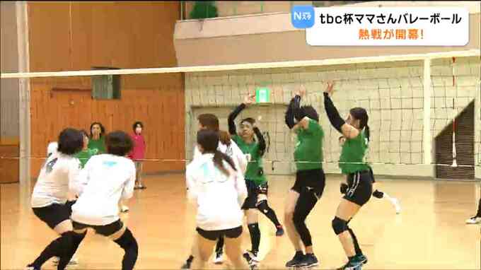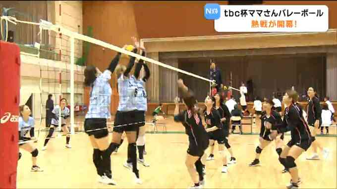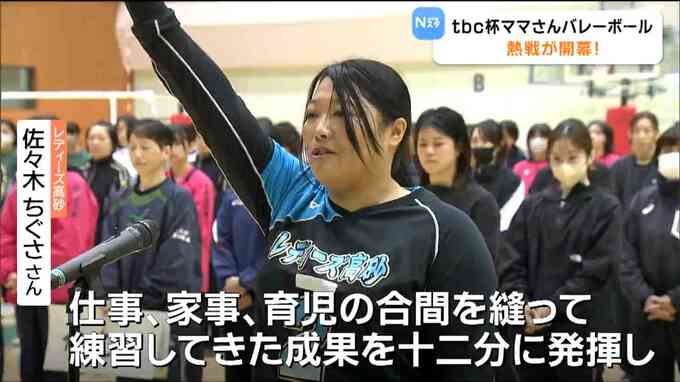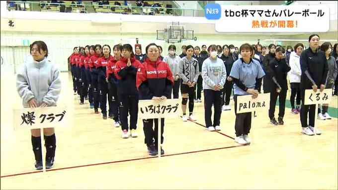 富谷スポーツセンターで開幕した「秋季tbc杯宮城県ママさんバレーボール親善大会」。