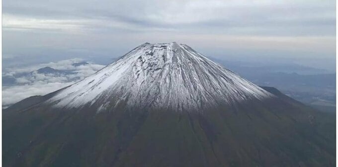・夏が過ぎてから初めて山頂付近が雪によって白く覆われること