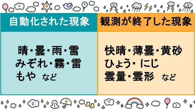 初霜、初氷以外にも多くの目視観測が自動化や廃止となりました。