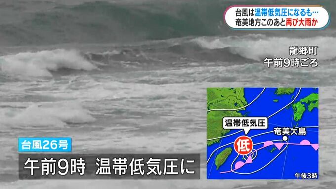 台風26号は13日、温帯低気圧に変わりましたが、奄美地方では13日夜からあす14日未明にかけて再び大雨となるおそれがあります。