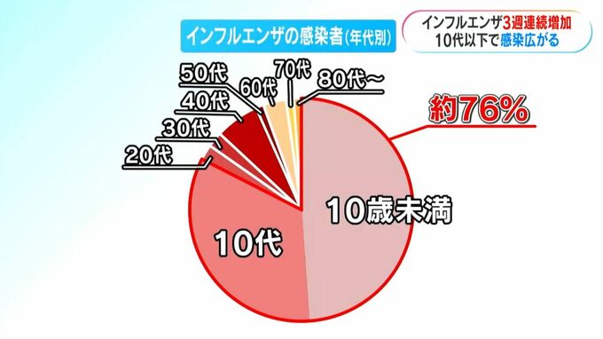 鹿児島県内でインフルエンザの患者数が3週連続で増加しています。特に10代以下の若い世代の感染が広がっています。