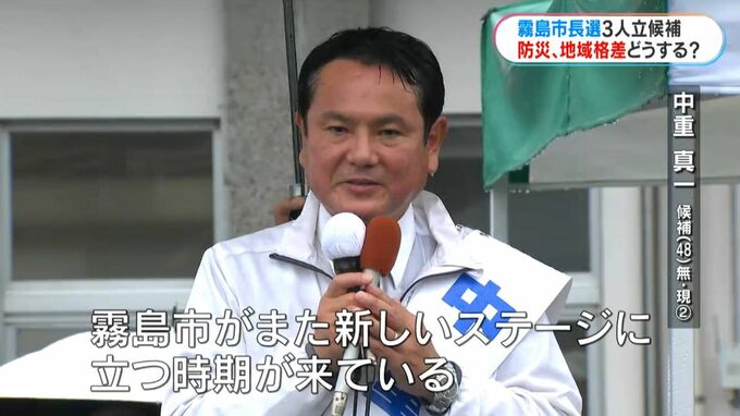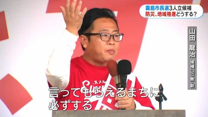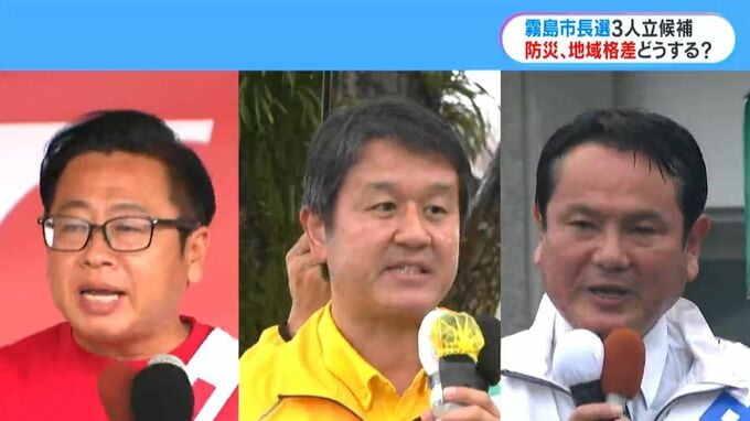 今度の16日に投開票を迎える霧島市長選挙です。今月9日に告示され、現職と新人あわせて3人が立候補しました。8月の集中豪雨を受けて、「災害に強いまちづくり」が争点の1つになっています。