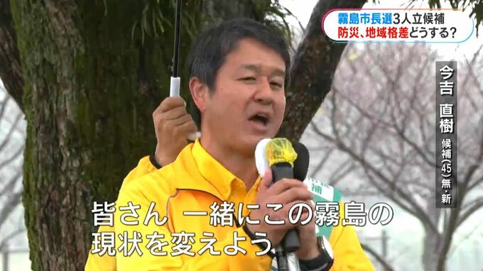 新人の今吉直樹さん(45)は、霧島市の職員や市議を経て、市長選に初めて立候補しました。市民の声を生かす市政運営や地域おこし協力隊を活用したまちづくりなどを掲げています。