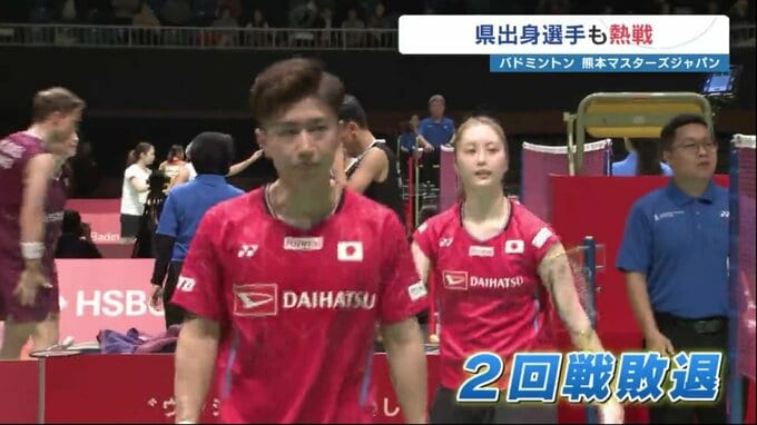 八代市出身の霜上雄一(27)は保原彩夏と混合ダブルス2回戦で、第3ゲームまでもつれこむ接戦となりましたが、惜しくも台湾のペアに敗れました。